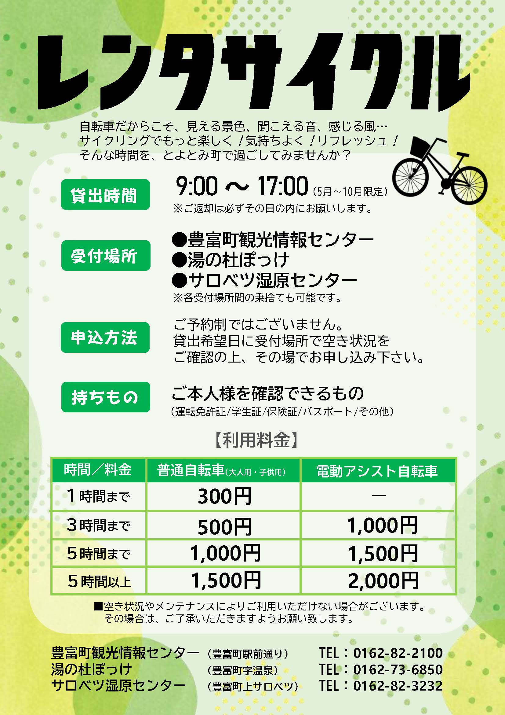 さて、その湯の杜ぽっけさんでは、ついに5月13日(火)からレンタサイクルの貸出がはじまります。