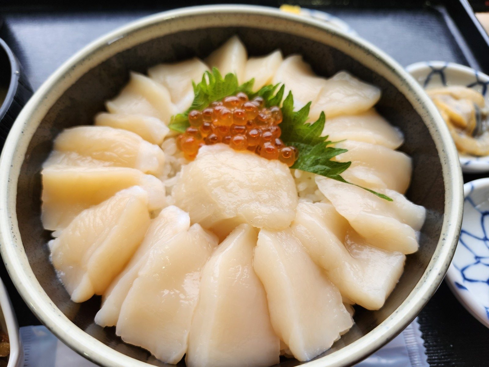 ぷりっぷりのホタテがたっぷり乗っていて、ひとくち食べると「うんまいっ!」と声が出てしまうほど・・・。