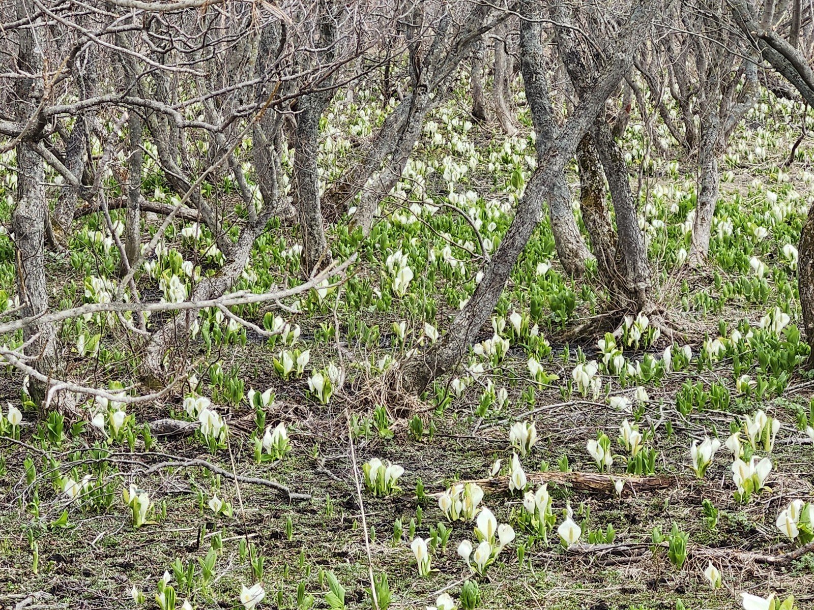 さらに運転していると、たくさんのミズバショウを発見。思わず車を止めて写真をパシャリ。