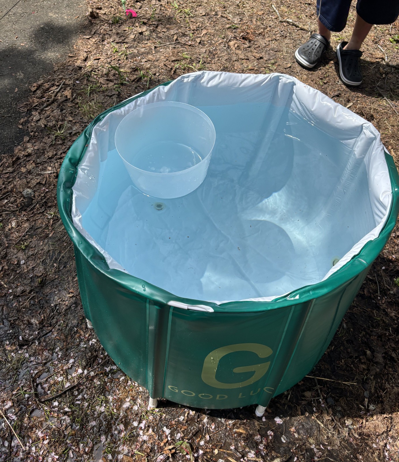外に出たら冷たいお水が。この日はとても暑い日だったので寒さを気にする必要もなく、頭から水をかぶりました。