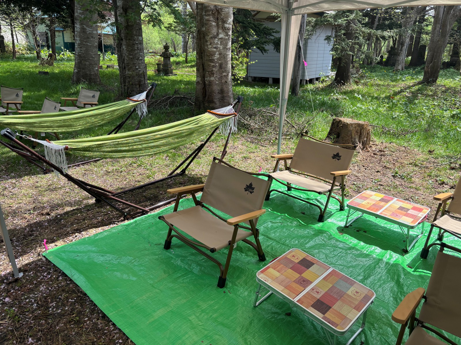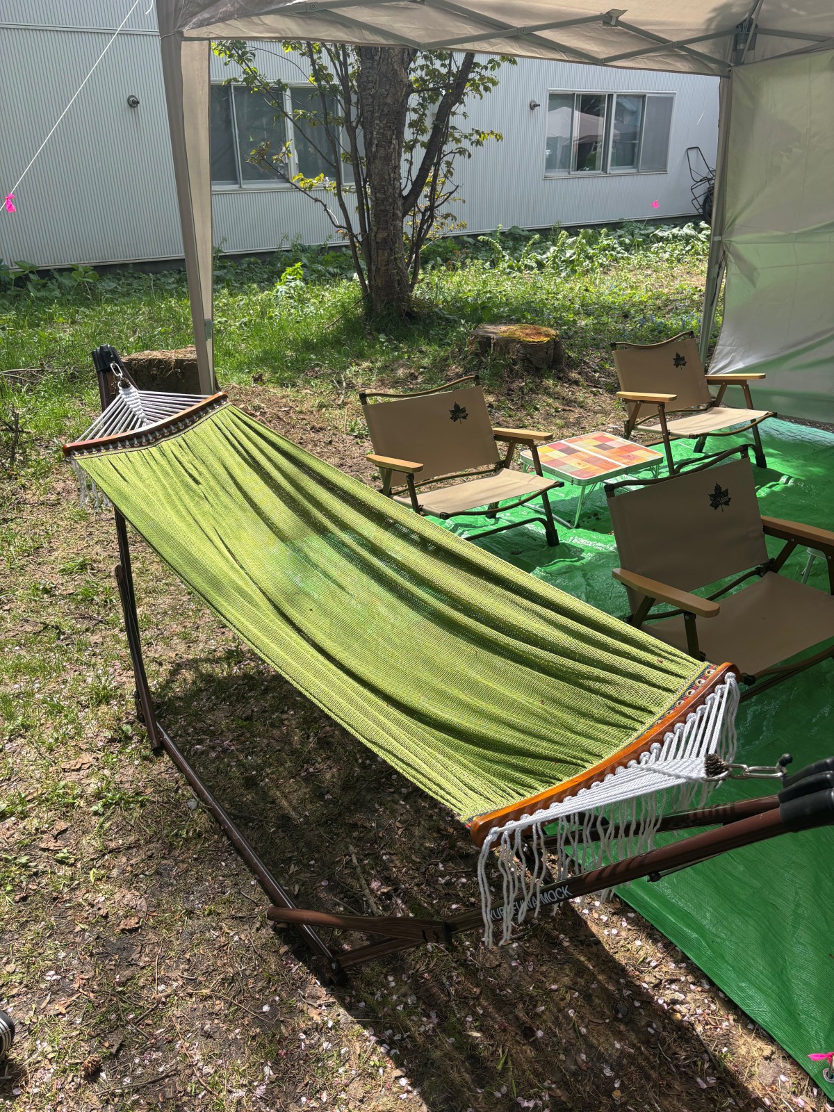 サウナテントの隣には椅子とハンモックが用意されていました。