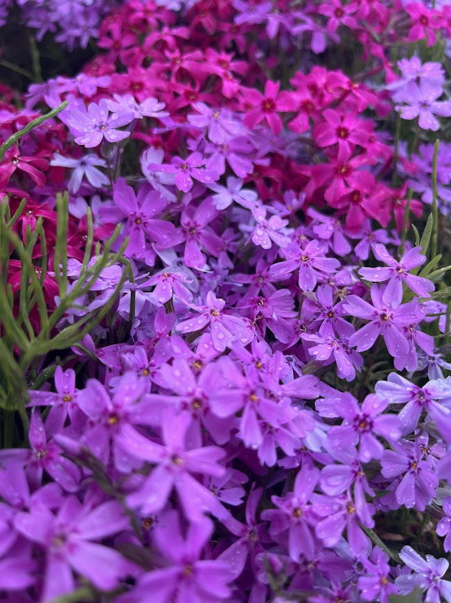 雨がしっかり降ってきて、芝桜の花びらを濡らしていきます。