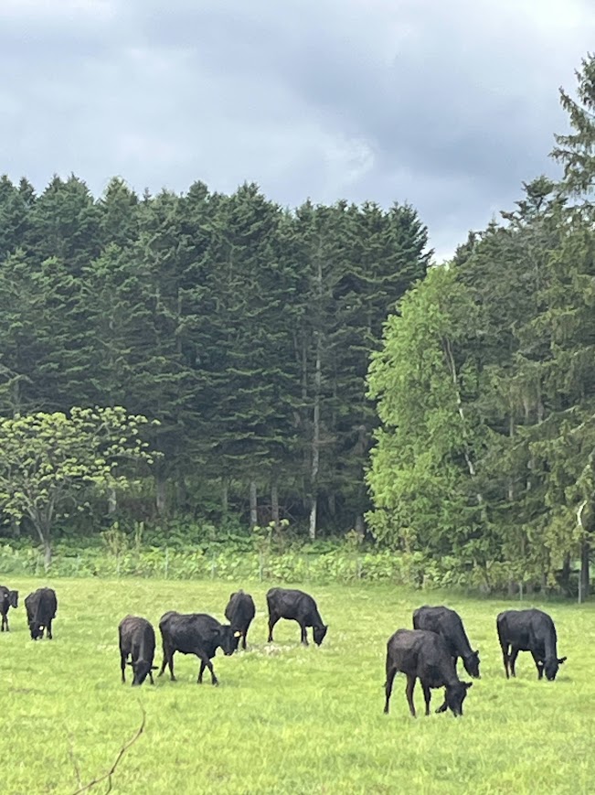 どこかからワラワラと(人間の誘導などなく)出てきて草を食む黒牛たち