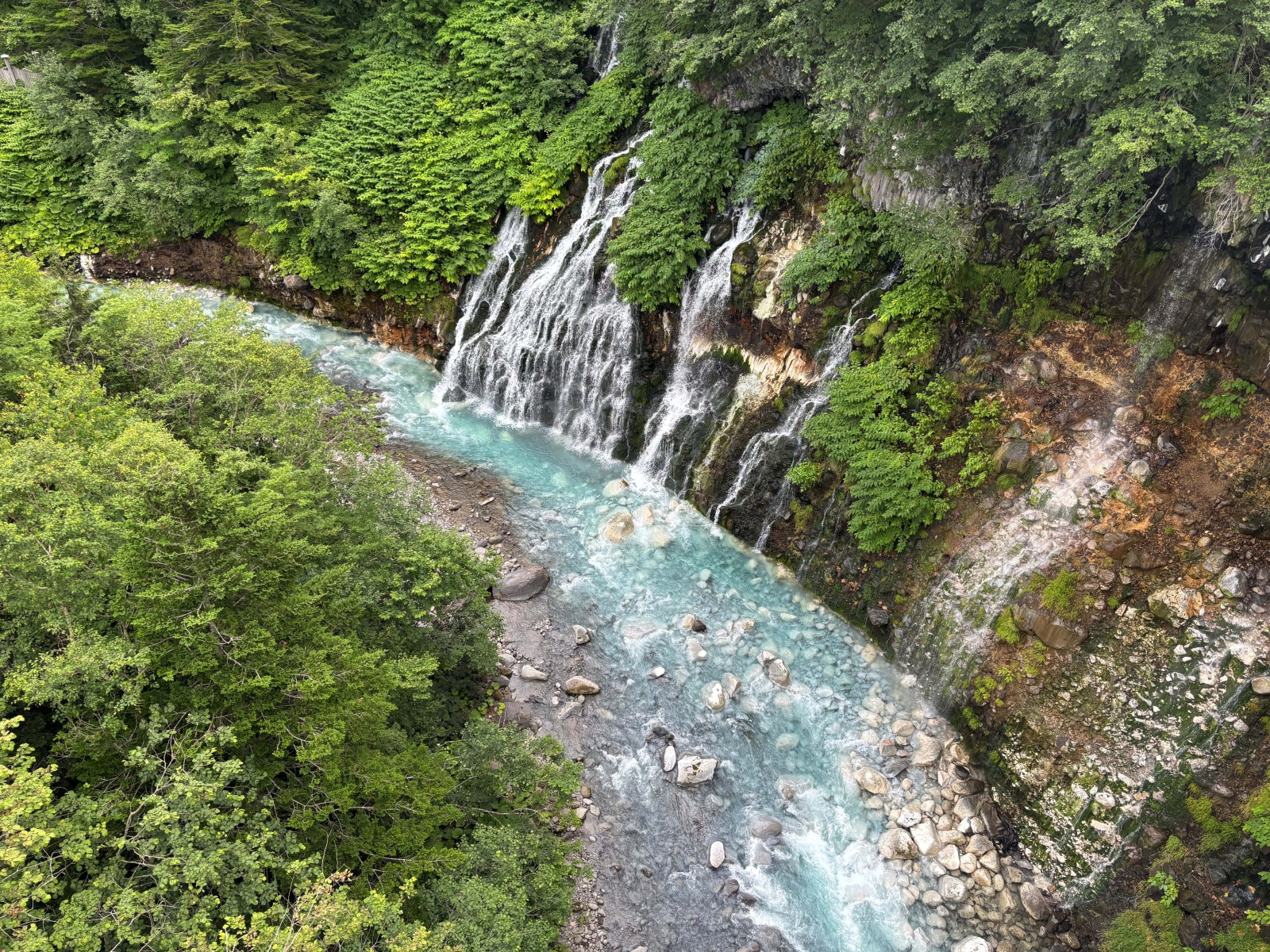 こちらは美瑛町にある、白ひげの滝。前日に行った青い池と同じコバルトブルーの水がとても綺麗。