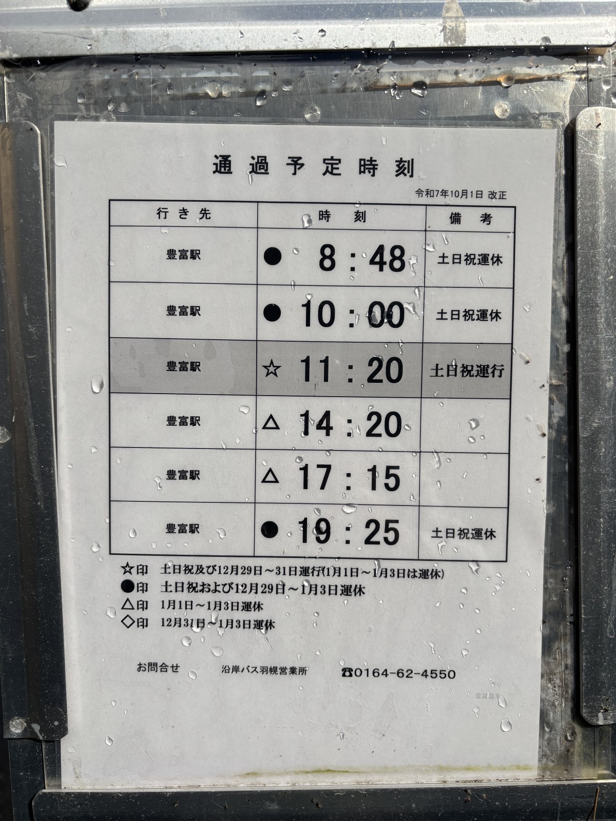 さて10月から沿岸バスさんの、豊富町を走っている路線バスの時刻表が変わりました。