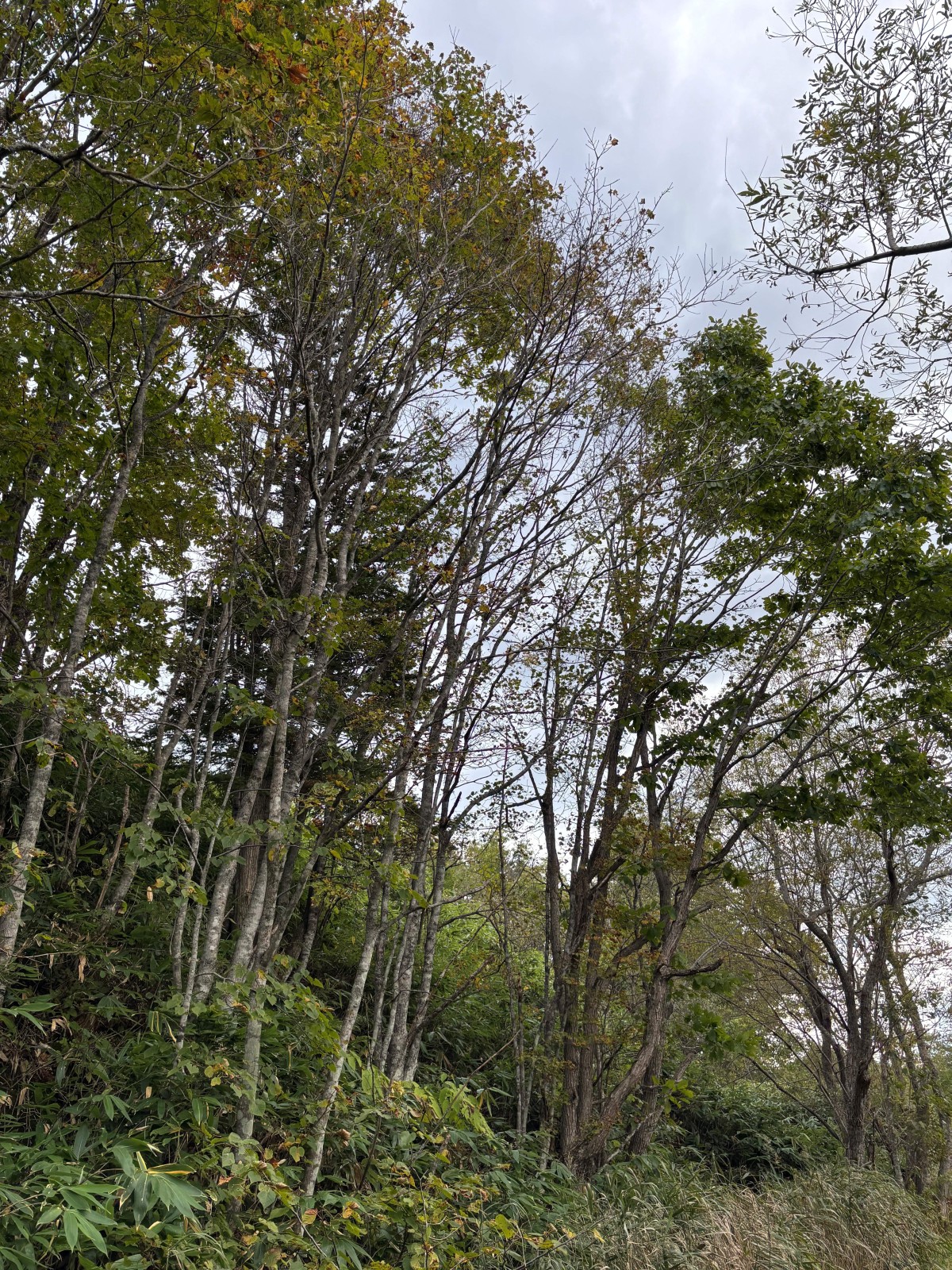 高くそびえる木々たち。普段はひとりで自然を楽しむことはありませんが、今回のイベントでは、ガイドのサロベツ・エコネットワークの方や、一緒に参加している方がいることで、散策が楽しく感じられました。