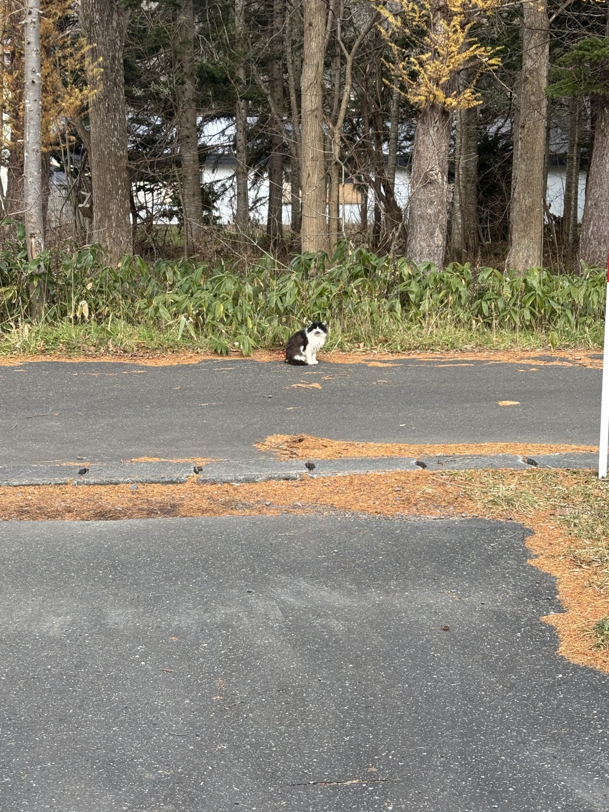 さらに5日後の景色ではこの通り、雪の影の形もありません。野良猫も雪が降ったりやんだりと生活リズムが崩されて大変そうです。