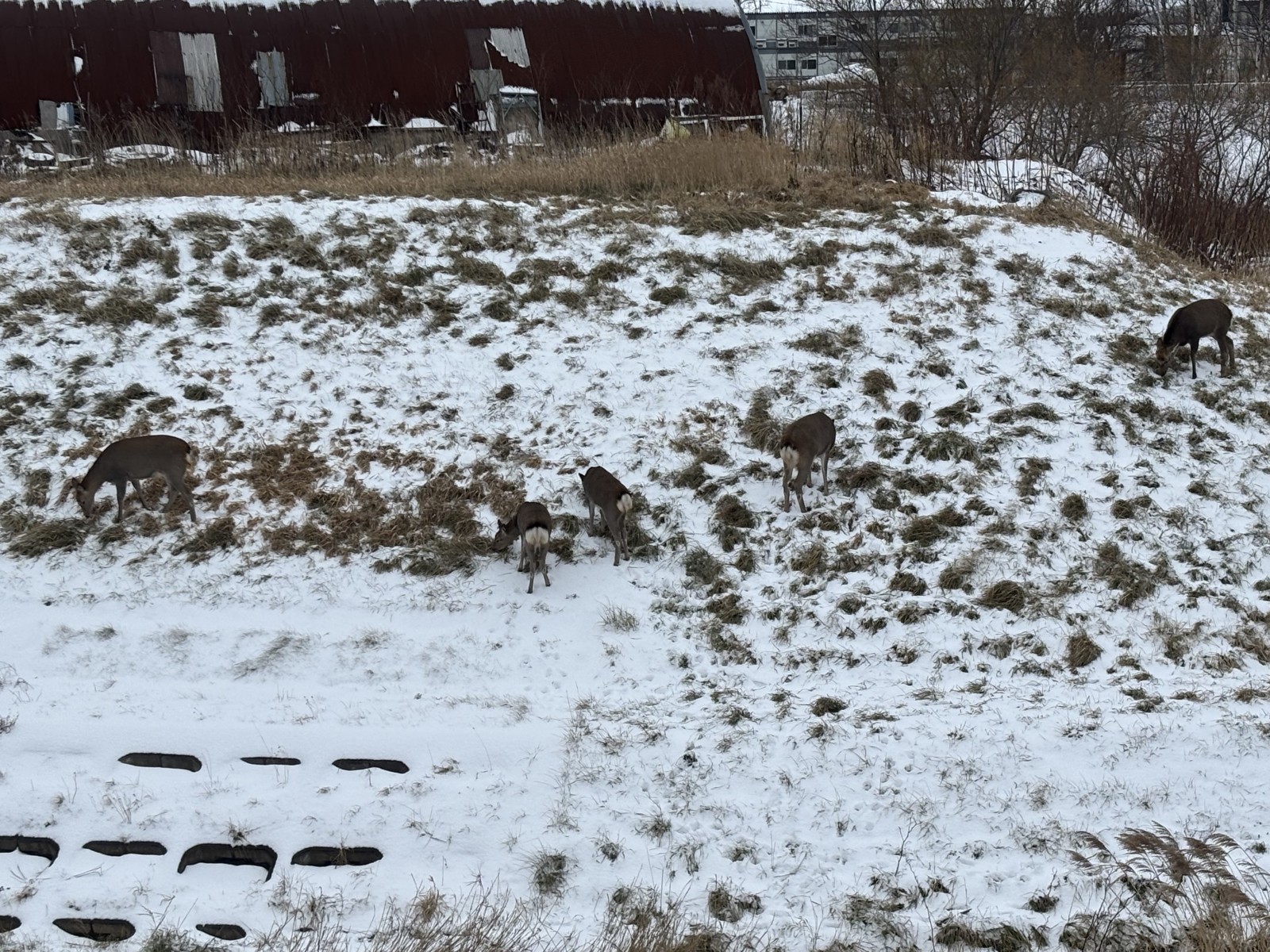 最後に稚内で見かけた草を食べることに夢中なシカの群れを載せて今回は以上です。