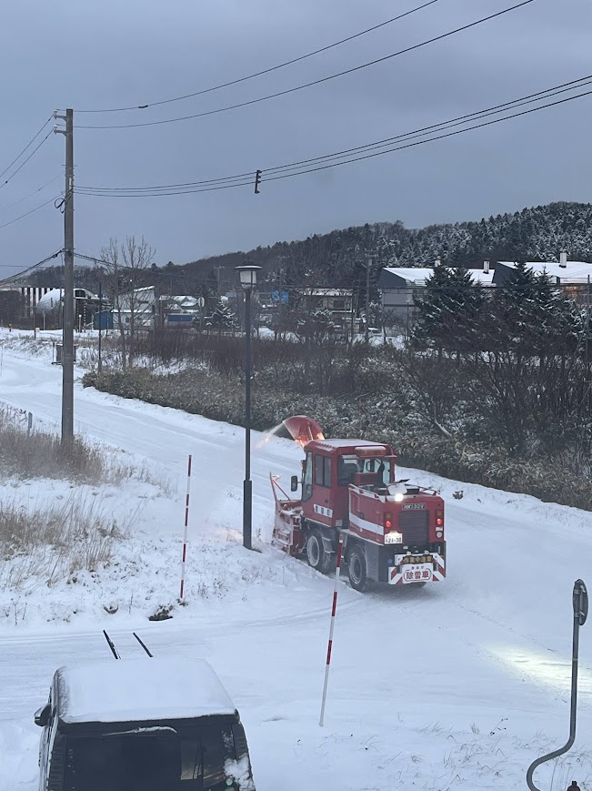 数日前、今季初(私的に)除雪車活動を発見。こちらは主に歩道を除雪する車です。