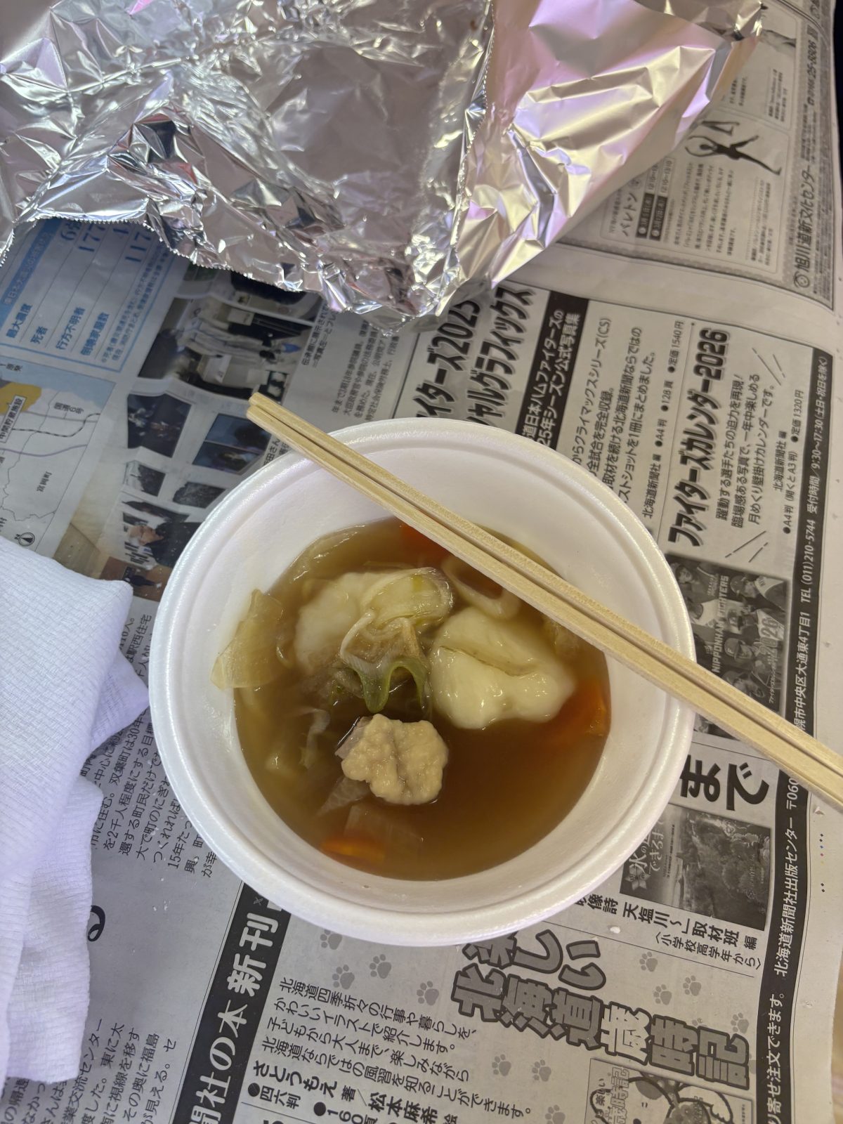 豊富町の伝承の会さんたちが作ってくれたお雑煮も一緒に食べました。つきたてのお餅はとても柔らかく、弾力があって美味しかったです。