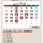 - 2025年10月11日【ふれあいセンター】11月の営業について