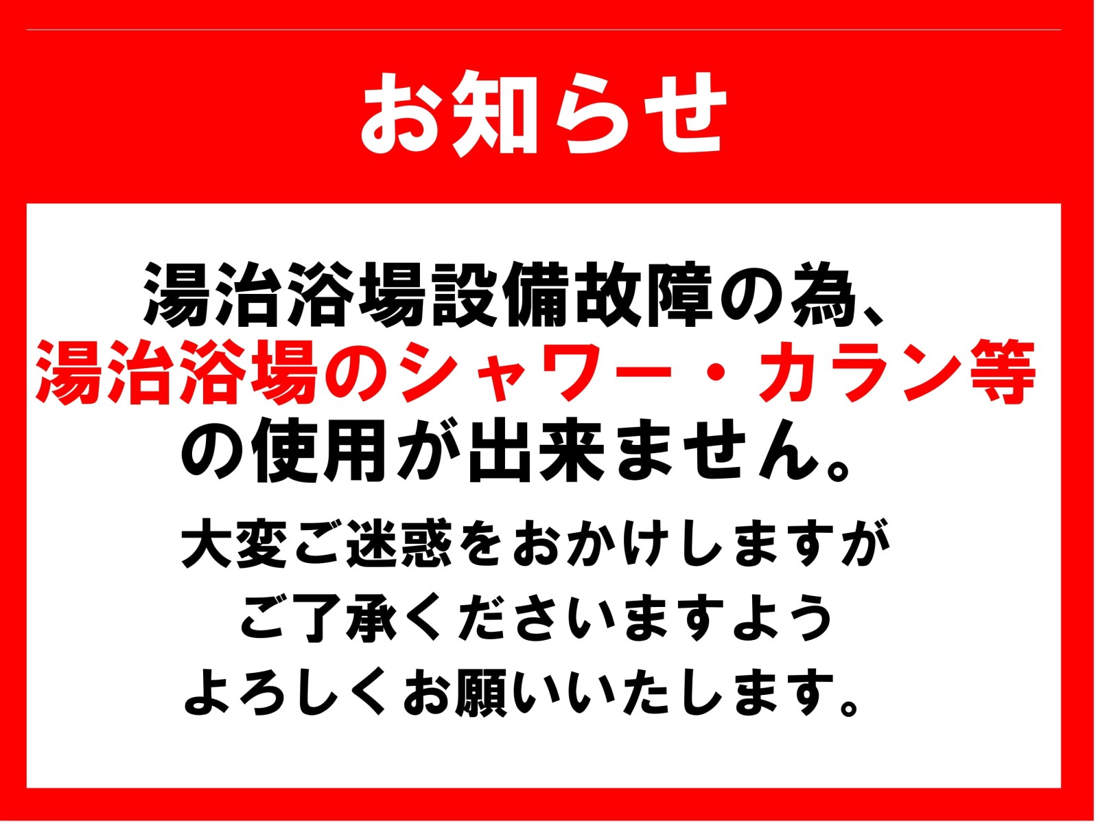 湯治浴場設備故障の為、湯治浴場のシャワー・カラン(シャワー下の蛇口)等の使用が出来ません。