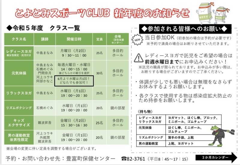 ※クラスによって予約先が異なります。チラシでご確認下さい。